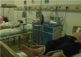 以下被烫伤,郭大爷脚被烫伤。塌方是热力管道爆管所致,热力部门表示将对此事负责。
