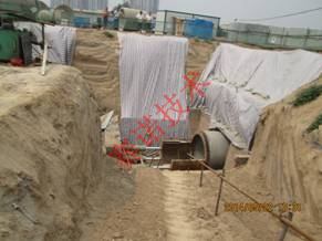 如果整个管线安装完毕,由于基础沉降等园艺,发现有承插口不能形成密封。如果简单的采取把管道拉出,则可能拉动紧邻的管道,造成整个管道接口全部失败。因此可以暂时不进行密封圈的密封试验,等整个管线安装完毕后,进行接头的封闭维修,如下图所示: